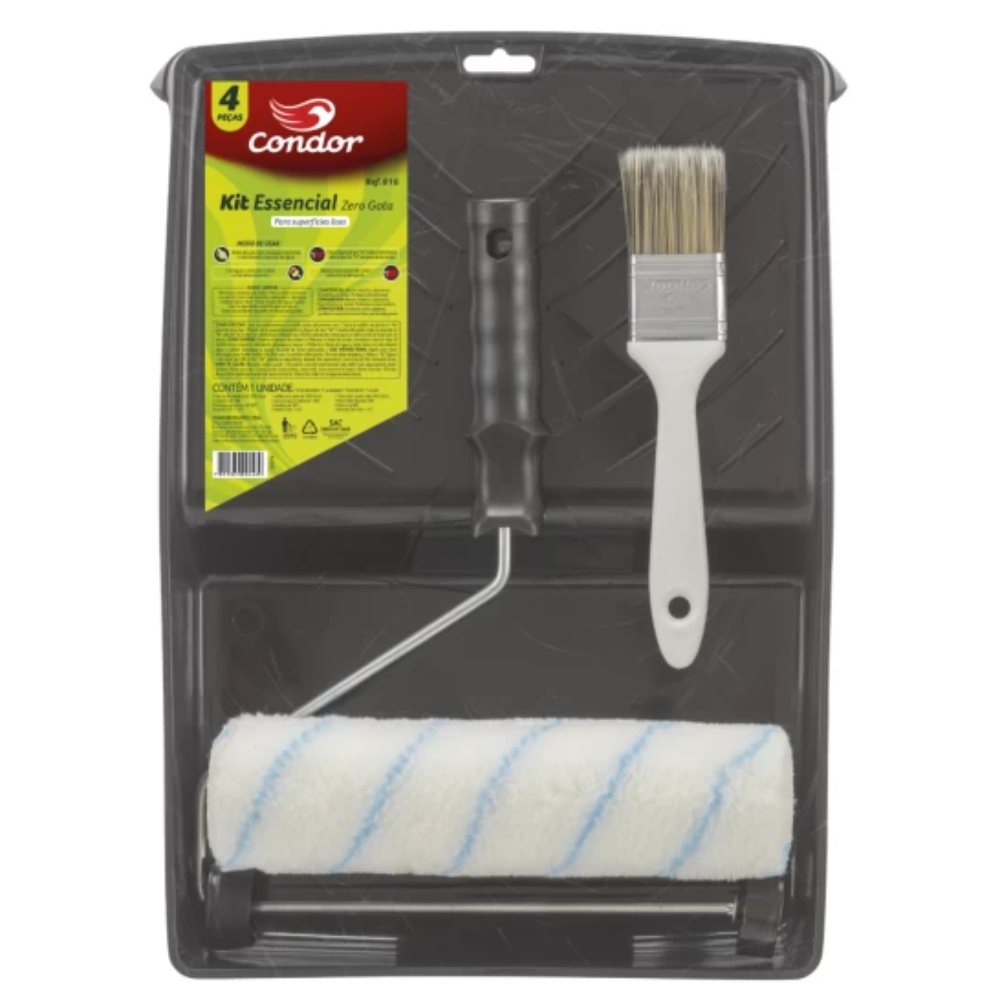 Kit completo para pintura imobiliária, desenvolvido para oferecer mais praticidade e reduzir respingos durante a aplicação de tinta em paredes e tetos.