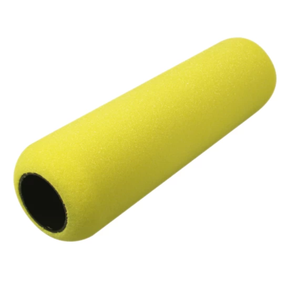 Rolo de pintura em espuma amarela, desenvolvido para proporcionar ótimo acabamento em superfícies lisas, especialmente em portas, móveis, esquadrias metálicas e de madeira.